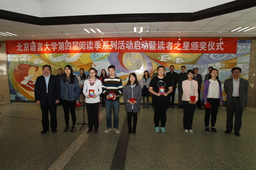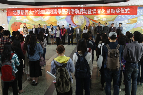4月21日上午,在第21个“世界读书日”来临之际,北语中外师生相聚图书馆,参加北京语言大学第四届“阅读季”系列活动启动暨2015年“读者之星”颁奖仪式。党委书记李宇明、校长助理张维佳及阅读季系列活动承办单位负责人出席活动。图书馆副馆长邓亚文主持了启动仪式。