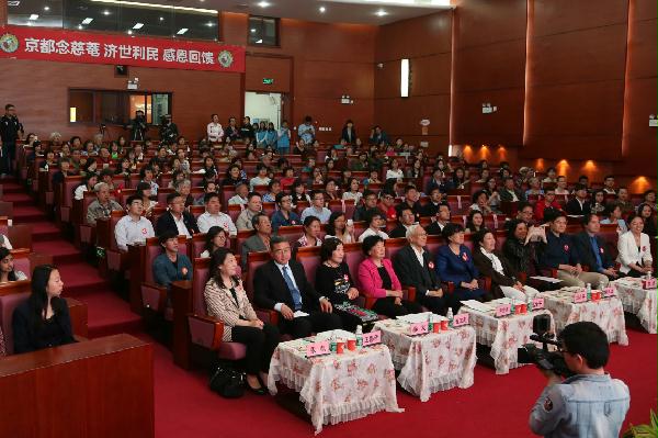 京都念慈菴与全国心系系列活动组委会签署了三年的爱心规划书。王鲁新副书记同与会领导共同为2016年度“青春伴夕阳•全国高校陪伴实践大赛”活动揭幕并为大赛评委团颁发聘书。评委团代表将“青春伴夕阳·全国高校陪伴实践大赛”旗帜授予了北京语言大学的志愿者代表。最后,三位分别来自中国、美国、韩国的志愿者献唱歌曲《相亲相爱一家人》,启动仪式圆满结束。