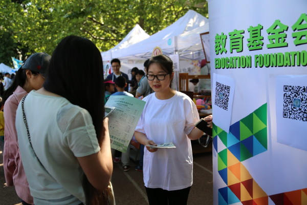 在今年的世界文化节活动中,基金会从 “趣味性”和“实用性”出发,开展了丰富多彩的活动彰显基金会的服务和公益理念,如中国传统文化展示、“你找事儿,我出钱”征集学生需求活动、树木认养活动、多肉植物DIY募捐活动。基金会与校学生社团找茶社合作,在现场进行茶艺表演,展示中国传统文化的同时,也为烈日下前来游园的人士送上茶水。这些活动均得到了现场校内外游园人士的关注和支持。