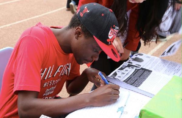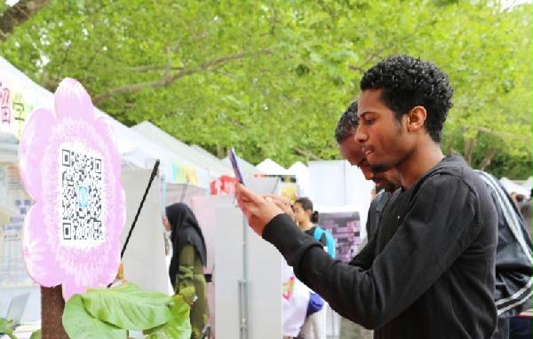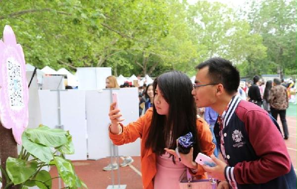 在活动中同学们积极扫二维码关注教育基金会到微信公众号,扩大了基金会在广大师生心目中的认知度。