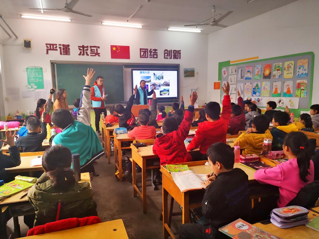 志愿者们通过对中国建筑结构的介绍,回答了孩子们的相关问题。为开拓孩子们的视野,中外志愿者分工介绍了一些标志性建筑,通过各地建筑的对比,进一步了解建筑背后反映的不同文化习惯。