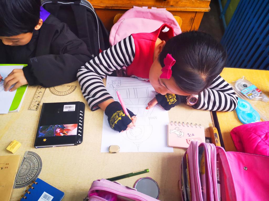 巩固小朋友们学到的知识,志愿者们随机请出几位同学上讲台画出学过的建筑。而台下的小朋友们也纷纷举手抢答。在紧张而快乐的建筑合作设计活动中,孩子们热情参与,纷纷为自己小组的建筑出谋划策,打造出一份份精美的作品。