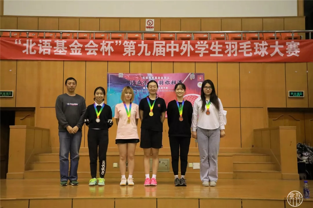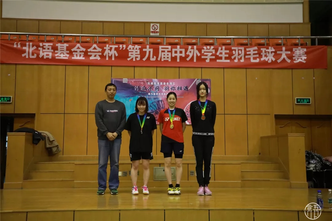 时近下午二时,第九届中外学生羽毛球大赛赛事圆满落幕。我校体育部游发生老师为各位选手颁发奖状与奖牌,并与全体参赛人员合影留念。