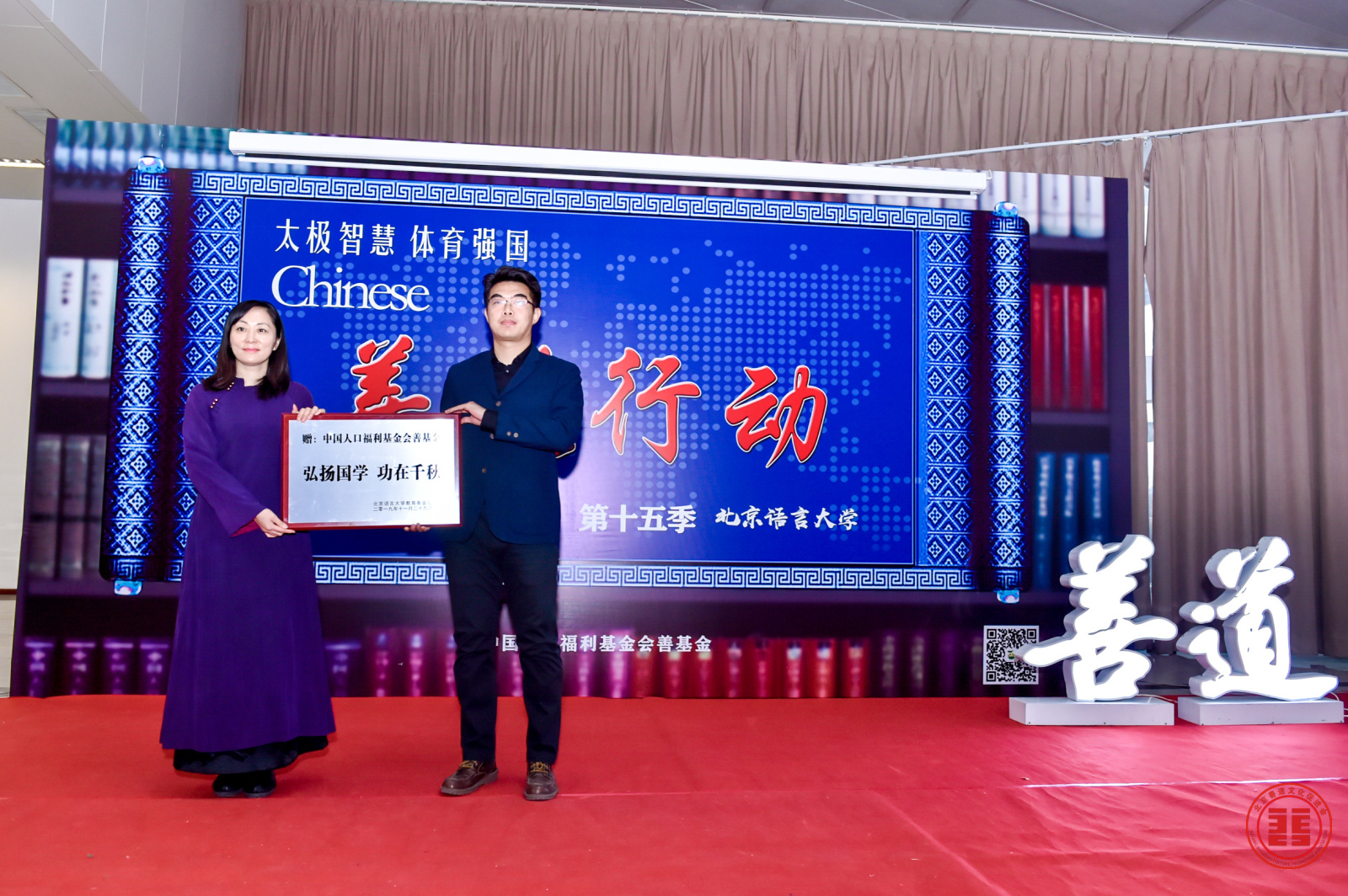 最后,主持人宣布活动结束,邀请大家上台合影留念。至此,本次“太极智慧·体育强国”中国人口福利基金会善基金“善道行动”第十五季的活动圆满完成。