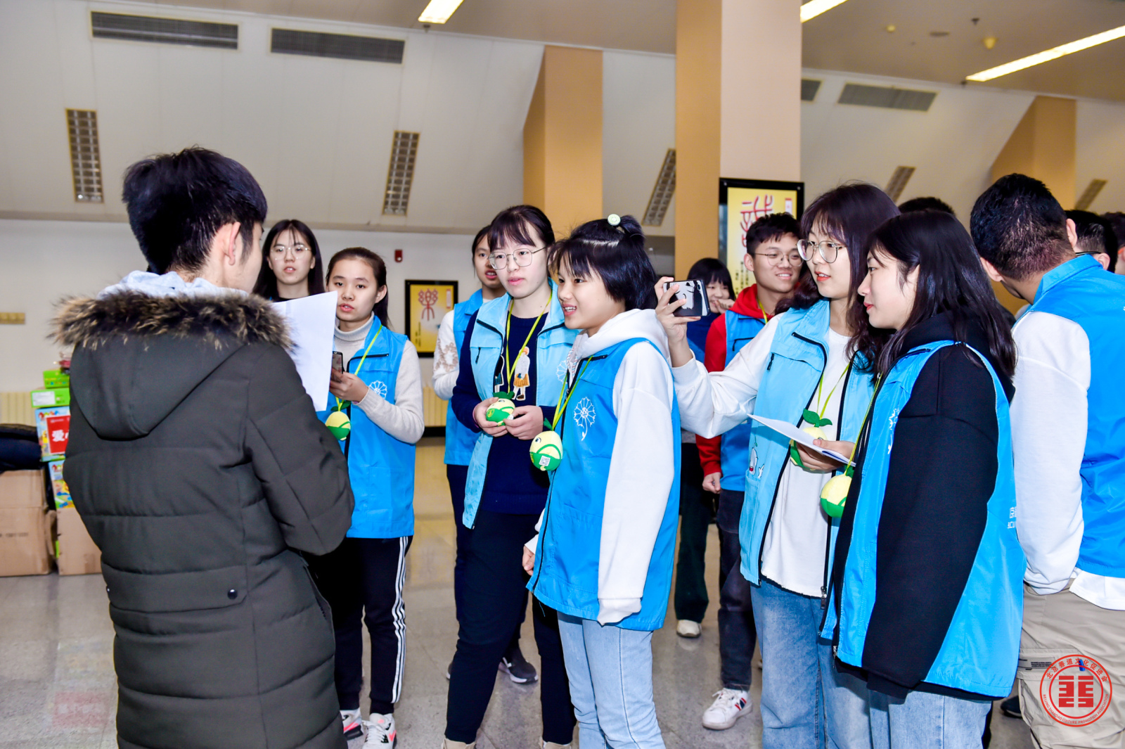 11月29日下午12:30分,19名中国本科生志愿者和4名国际学生志愿者在北语东门集合,并统一前往国家奥林匹克体育中心英东体育馆参加本次“太机智慧·体育强国”中国人口福利基金会善基金“善道行动”第十五季的活动。志愿者们于13:30分到达英东体育馆,并开始帮助工作人员搬运物资、拍摄视频并和凤凰书院的小朋友们慢慢熟悉。