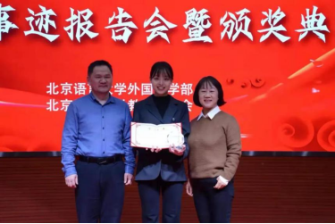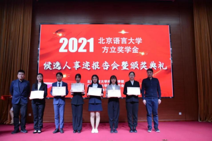 2021年12月3日下午两点,由北京语言大学外国语学部和北语教育基金会共同主办的第三届北京语言大学“方立奖学金”候选人事迹报告会暨颁奖典礼在我校逸夫报告厅举行。
