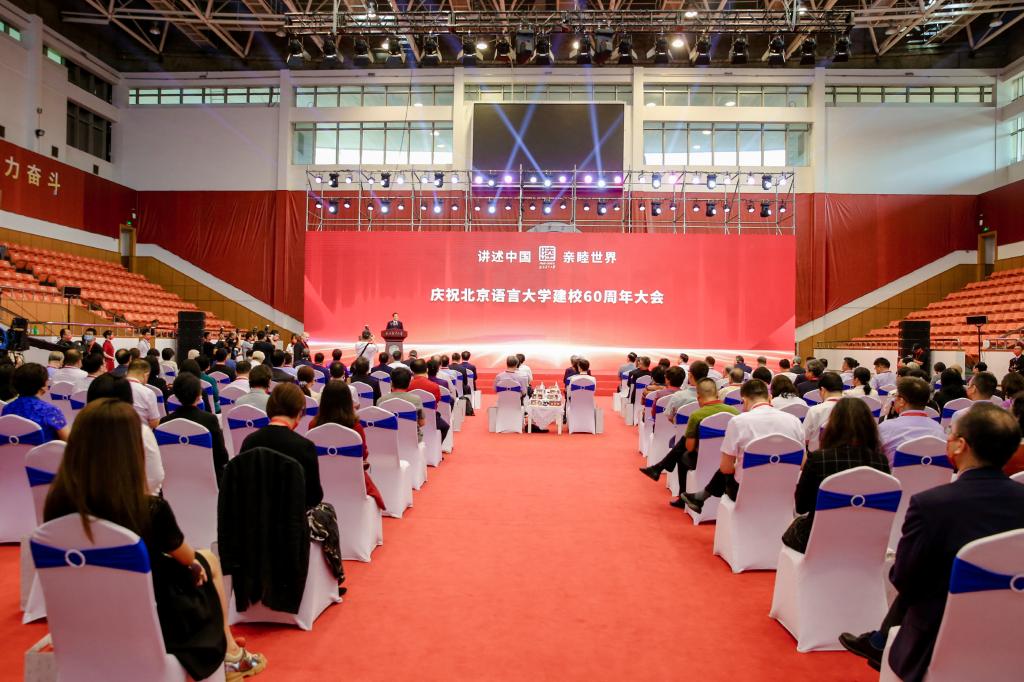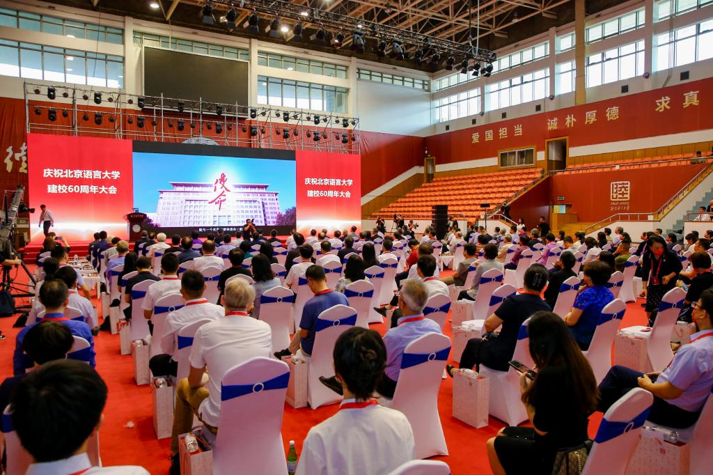 上午9时30分,庆祝北京语言大学建校60周年大会在逸夫体育馆隆重举行。中外师生员工、海内外校友和关心北语发展的各界人士相聚线下和“云端”,共襄盛举,共叙情谊,共享喜悦,共谋新篇。