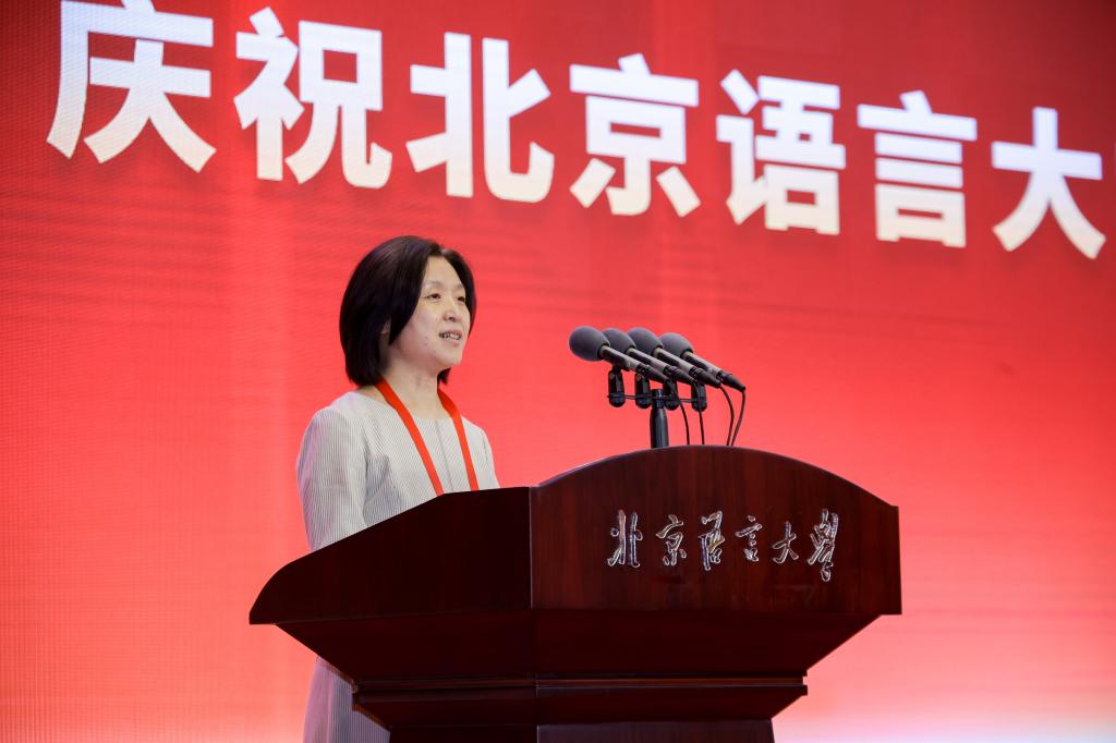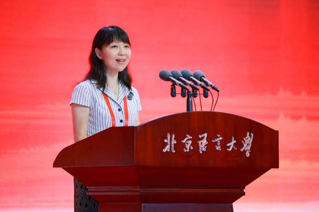 北语教师教育学院院长施家炜教授作为教师代表发言。她表示,北语是新中国国际中文教育事业发展的先行者和开拓者,是学科的奠基者和引领者。北语60年的历史,就是新中国国际中文教育事业发展史的重要代表。北语的老一辈挚爱教学,潜心育人,他们体现着北语传统,共同铸就了北语精神,奠定了今天北语的牢固根基。今天的我们,继承老一辈的光荣传统,精研教学,立德树人,获得了国家级教学团队、国家级一流本科专业、国家级一流本科课程、全国高校黄大年式教师团队、北京市教学名师等荣誉,传承着属于北语的荣光与梦想。