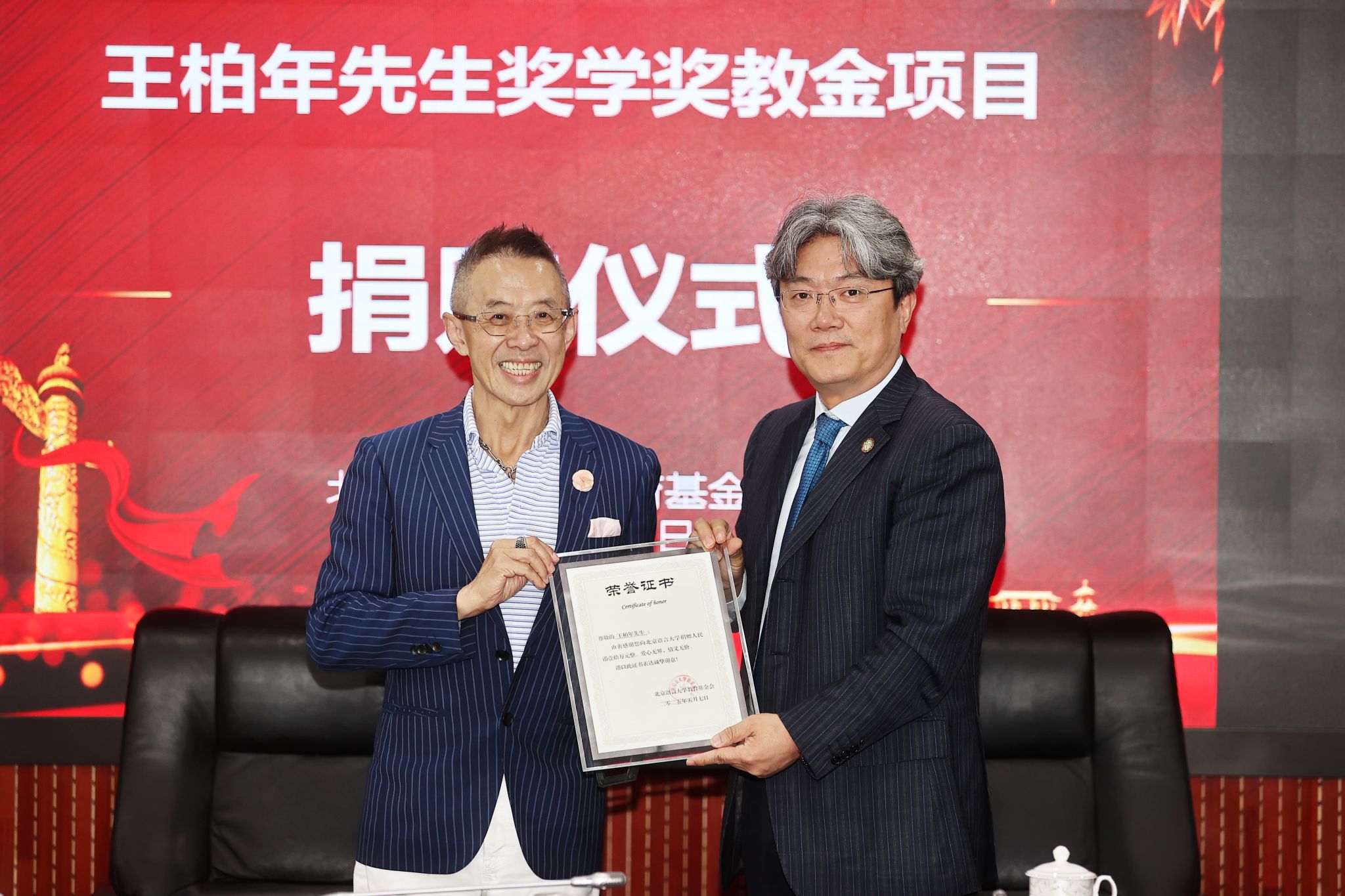 捐赠仪式现场庄重而热烈。仪式伊始,张宝钧副校长和王柏年先生郑重地在捐赠协议书上签字,同时,张宝钧副校长代表学校向王先生颁发捐赠证书。