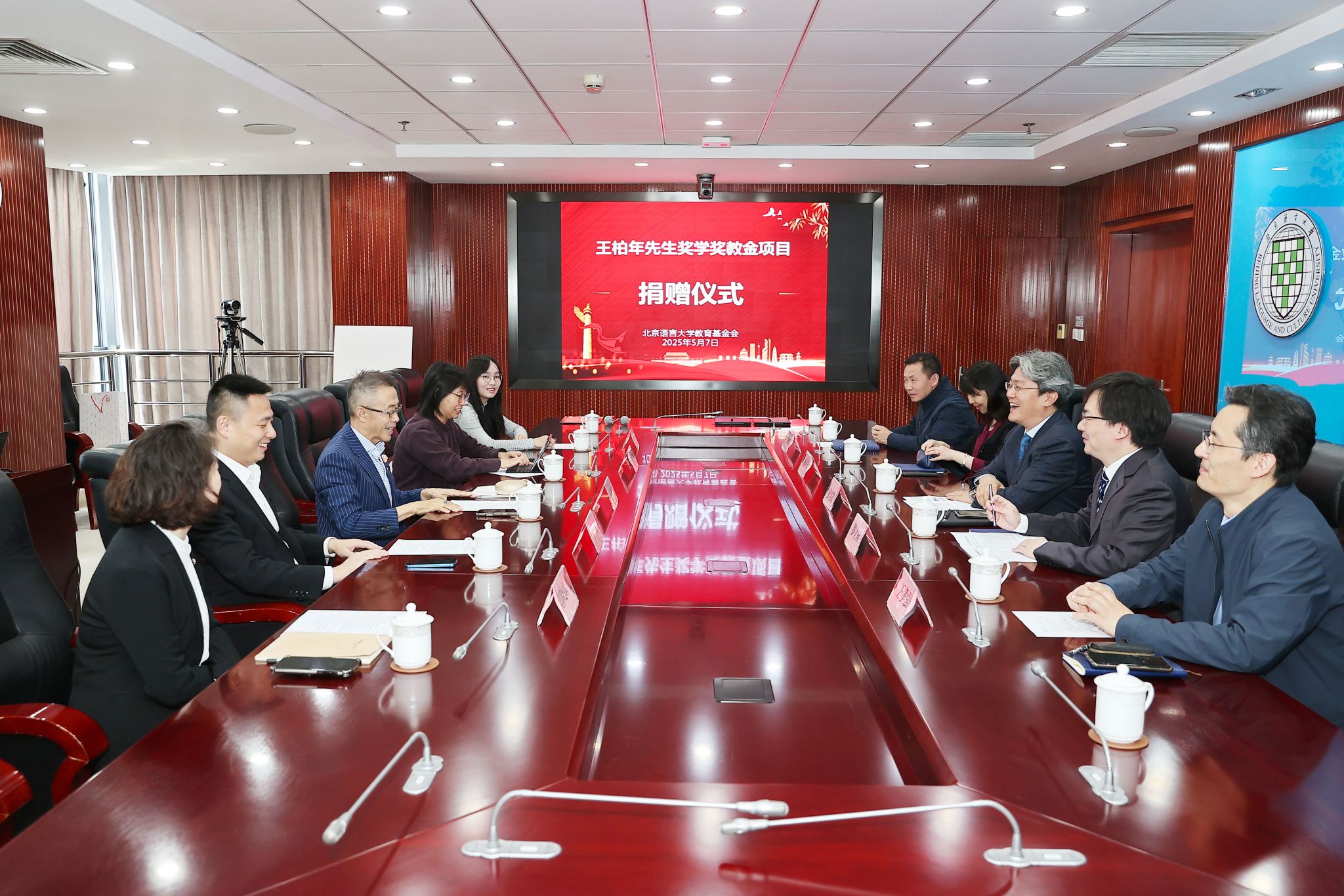 5月7日上午,北京柏年公益基金会主席王柏年先生一行莅临我校,出席王柏年先生奖学、奖教金捐赠仪式。北京语言大学副校长、北语教育基金会理事长张宝钧,教师教育学院院长施家炜,学院党委书记王孝强,学院党委副书记李晓波,博士生导师郭晓麟以及学院汉语国际教育专业本、硕、博学生代表齐聚一堂,共同见证这一意义非凡的时刻。本次捐赠仪式由教育基金会秘书长罗立祥主持。