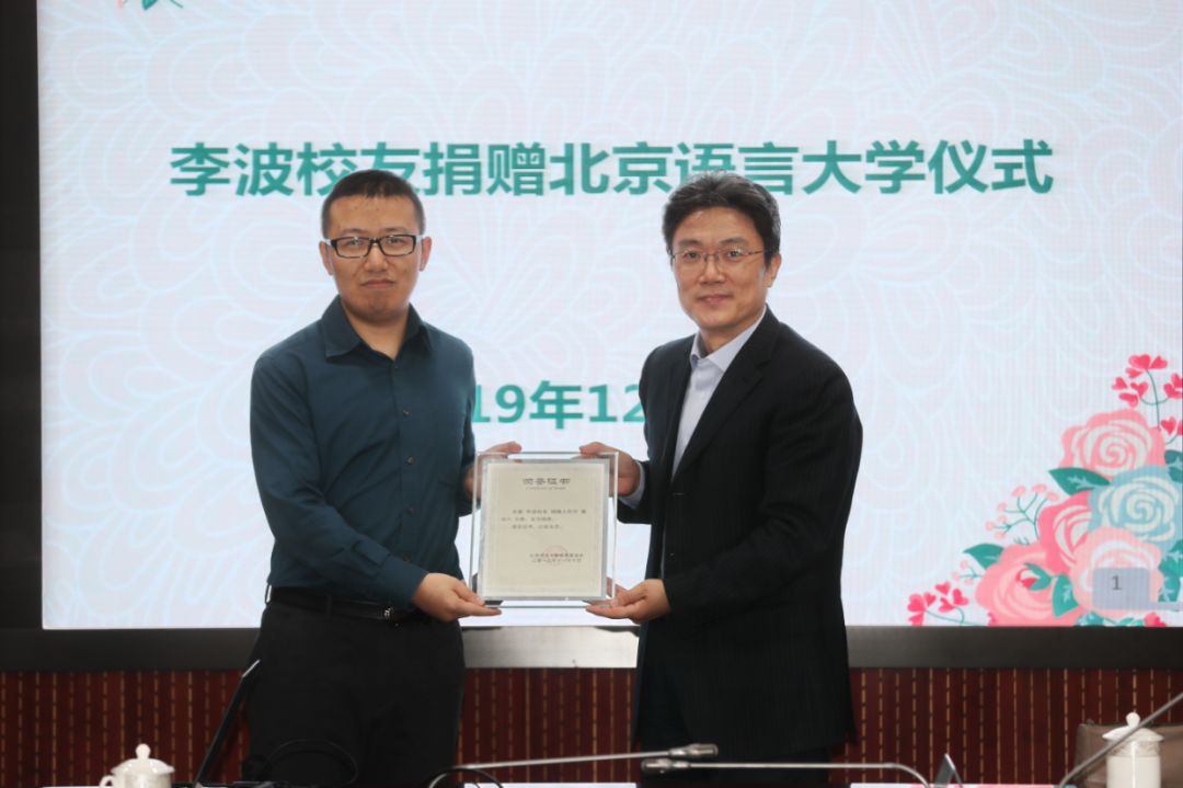今天,李波校友向学校捐赠100万元人民币,用于支持学校、学部教育事业的发展。这是北语建校史上以校友个人名义捐出的最高金额款项。这种精神、这种情怀令我们感慨动容。除了表示诚挚的感谢和深深的敬意之外,我也想代表学部向李波校友郑重承诺:我们切实用好这笔捐款,尊重校友意愿,从学生基本需求出发,精心设计好分类分级的资助项目,建立规范透明的管理、监督和反馈机制,不负李波校友的厚爱和信任。